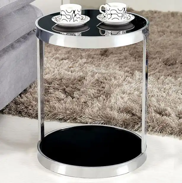 Stainless Steel Glass Coffee Table Sofa Side Cabinet Circular