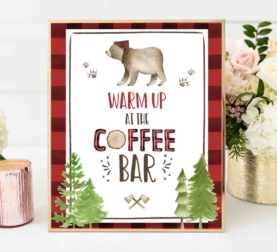 Warm Up At The Coffee Bar Table Sign Lumberjack Party Sign Rustic