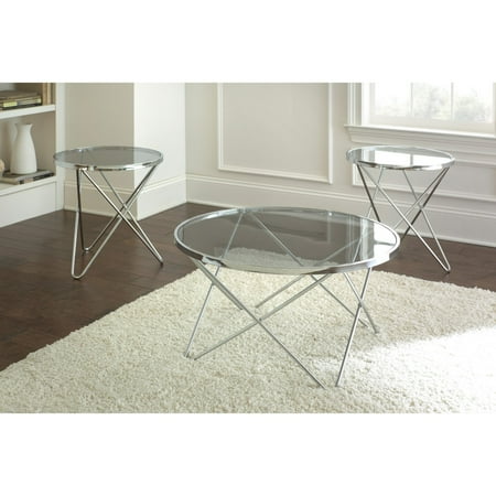 Steve Silver Matrix Round Chrome And Glass Coffee Table Set