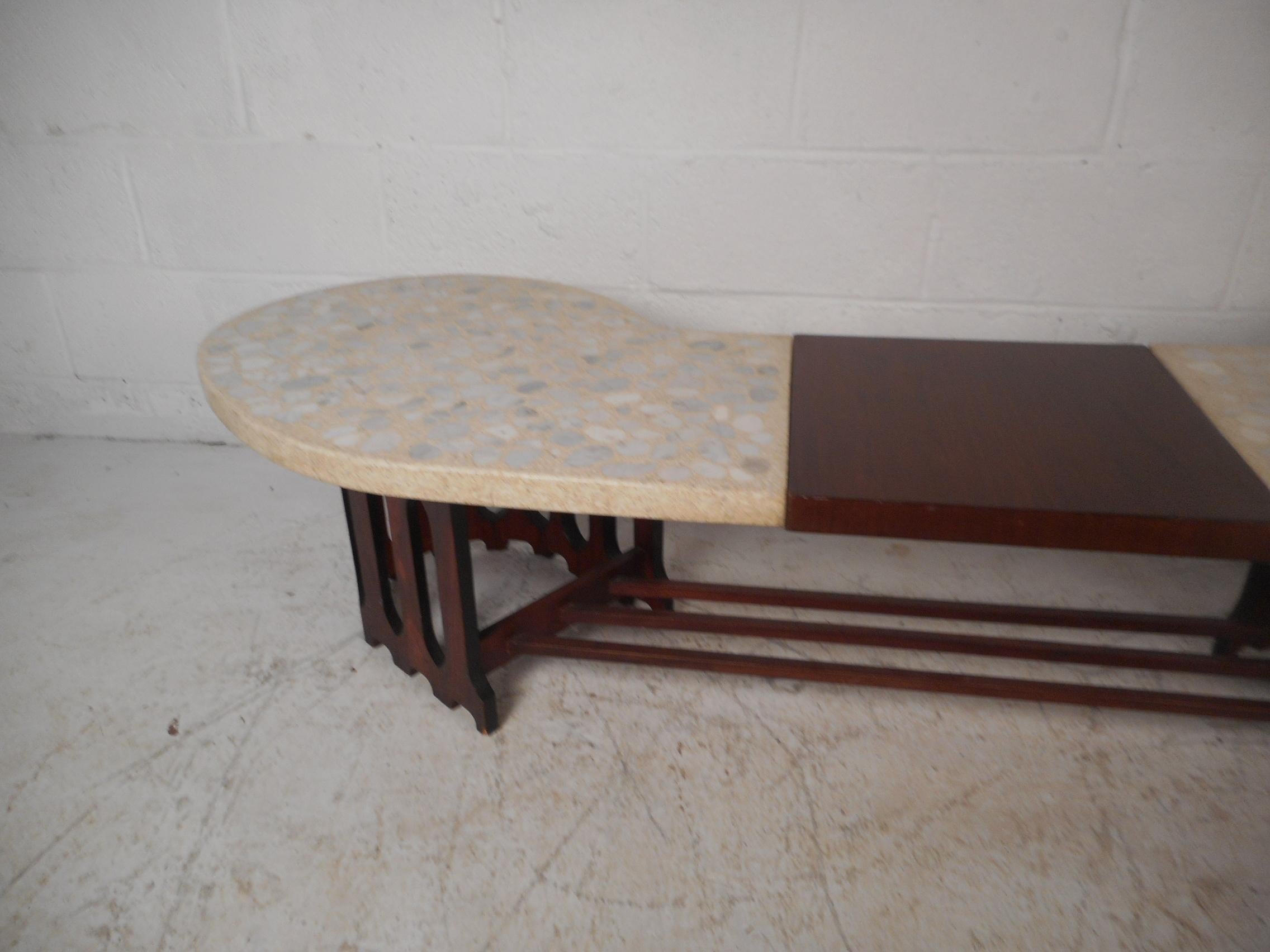 Midcentury Inlaid Stone And Walnut Top Coffee Table For Sale At