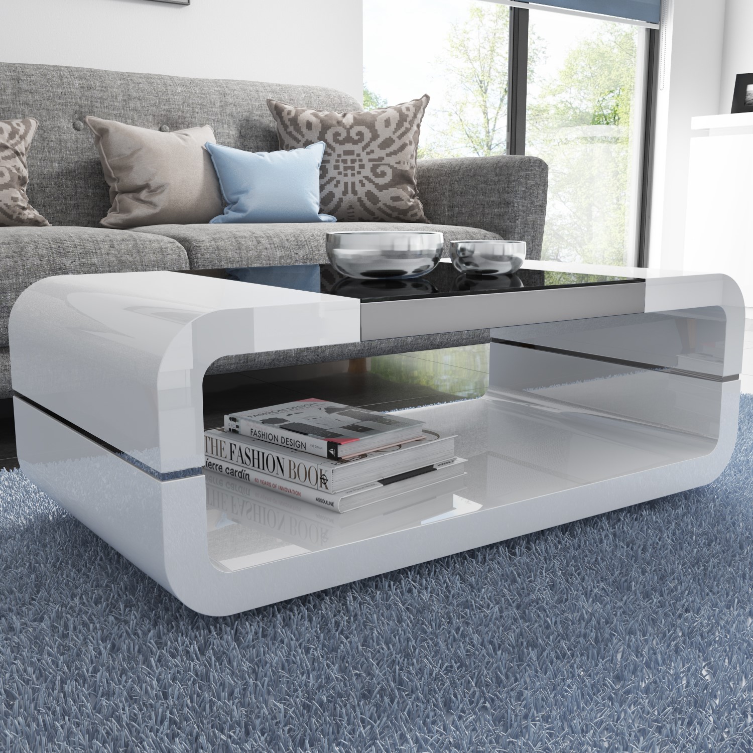 Grade A2 Tiffany White High Gloss Curved Coffee Table With Black