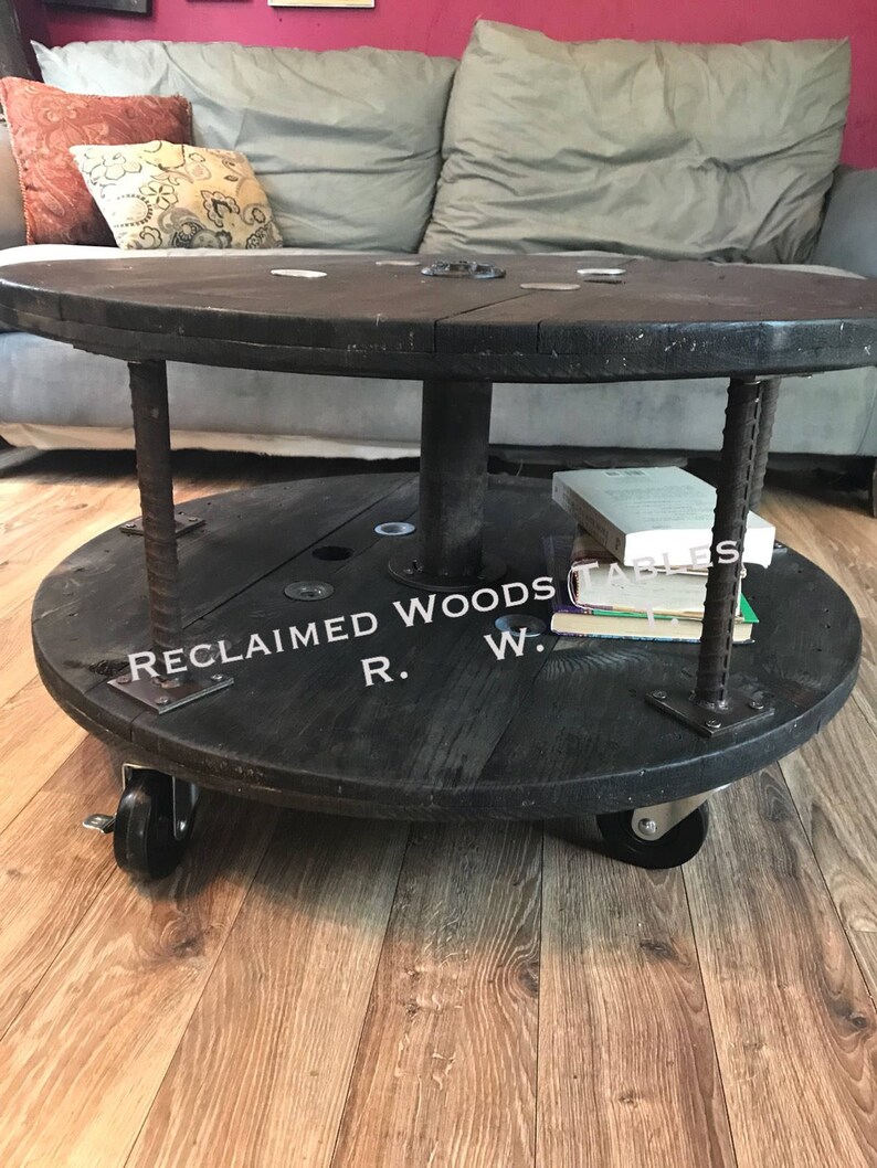 Reclaimed Industrial Wire Reel Solid Woodl Spool Coffee Table Etsy
