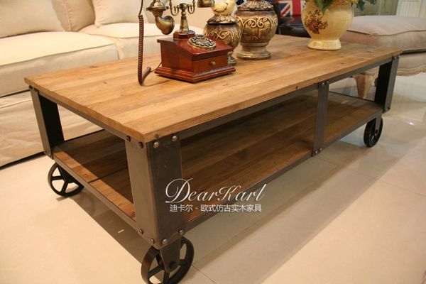 Loft American Country Wrought Iron Coffee Table Vintage Wood