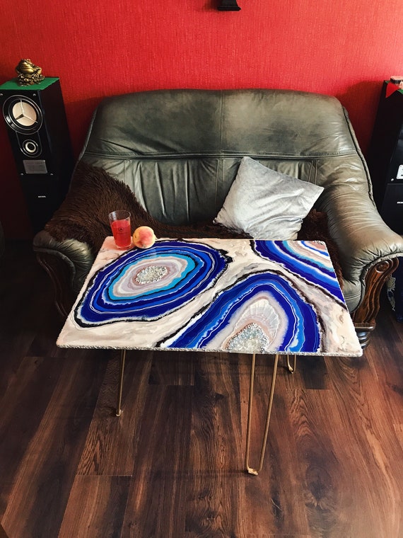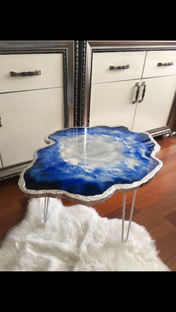 Bedside Table Blue Resin Table Geode Table Coffee Table Etsy