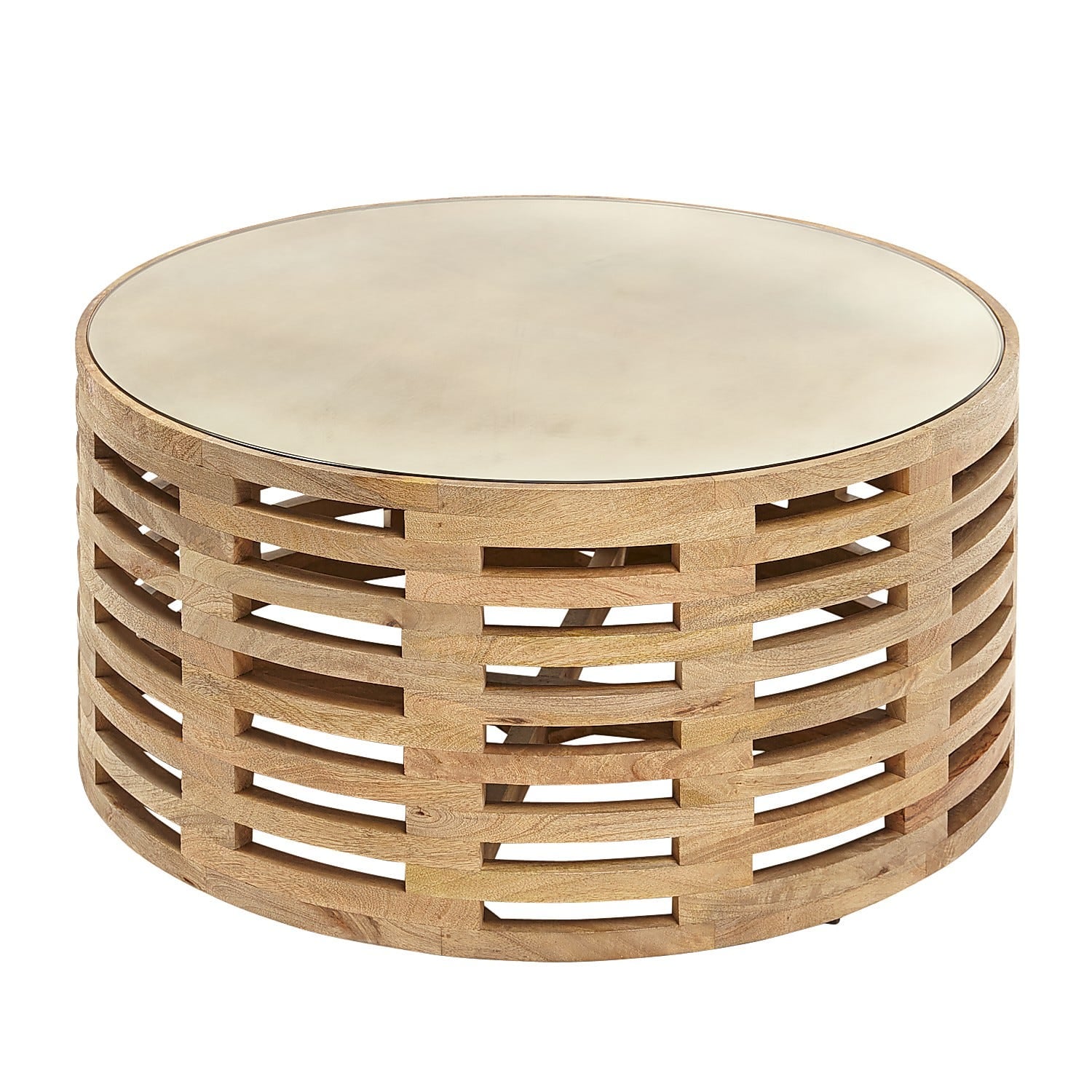 Shop Wanderloot Guggenheim Round Marble Top And Wooden Slat Coffee