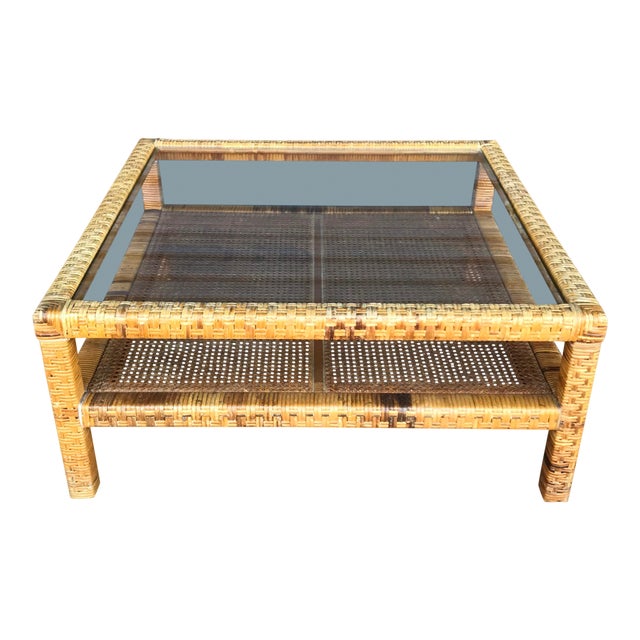 Vintage Woven Wrapped Rattan Coffee Table Chairish