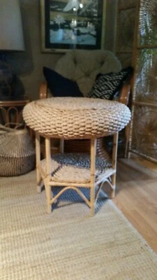 Small Natural Woven Cane Side Table Footstool Rockett St George