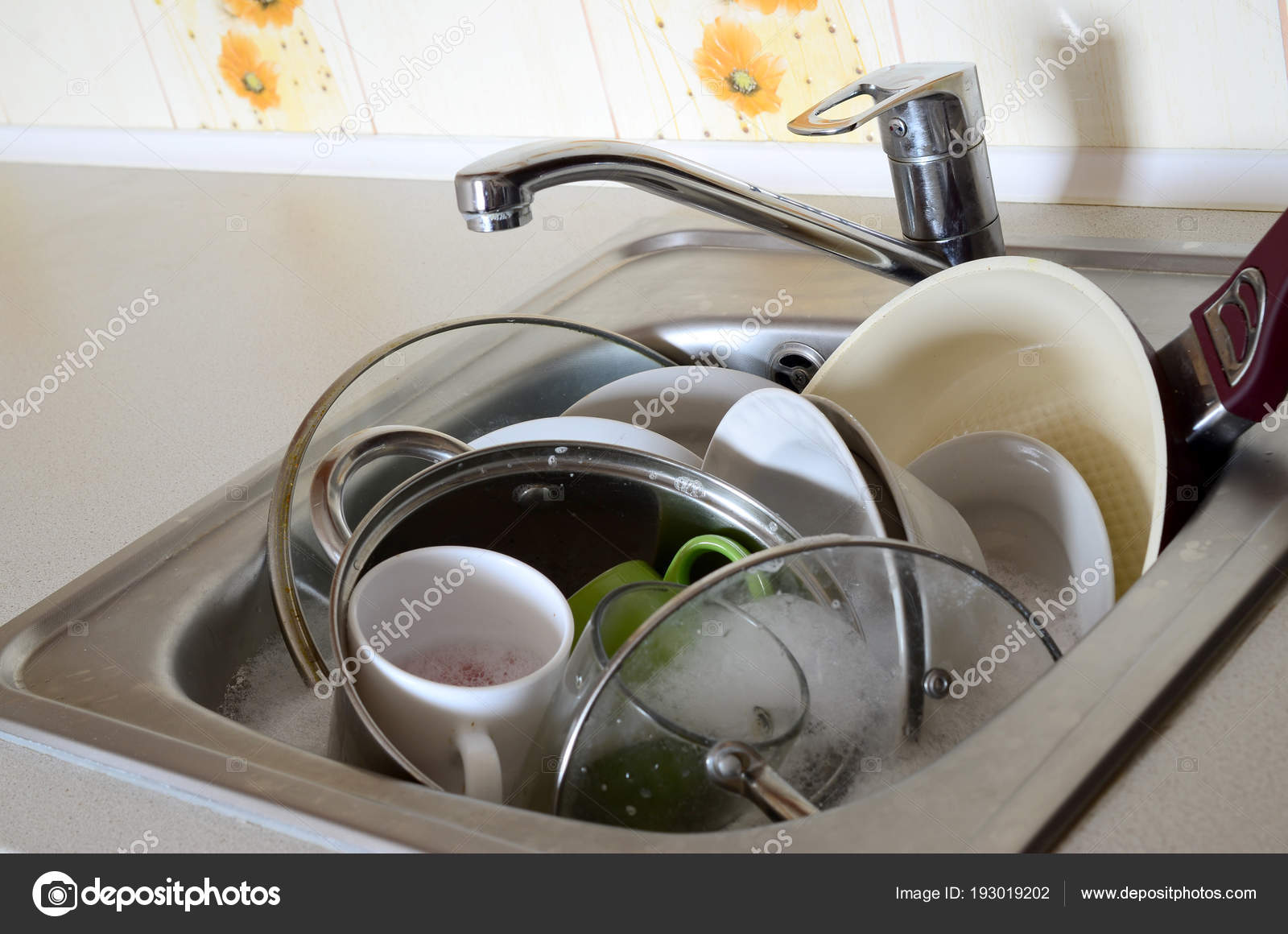 Dirty Dishes Unwashed Kitchen Appliances Filled Kitchen Sink