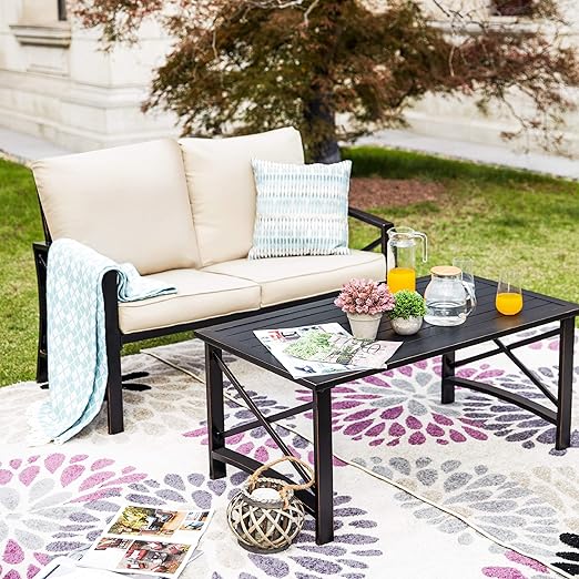 Amazon Com Lokatse Home 2 Pieces Patio Loveseat Metal Frame With