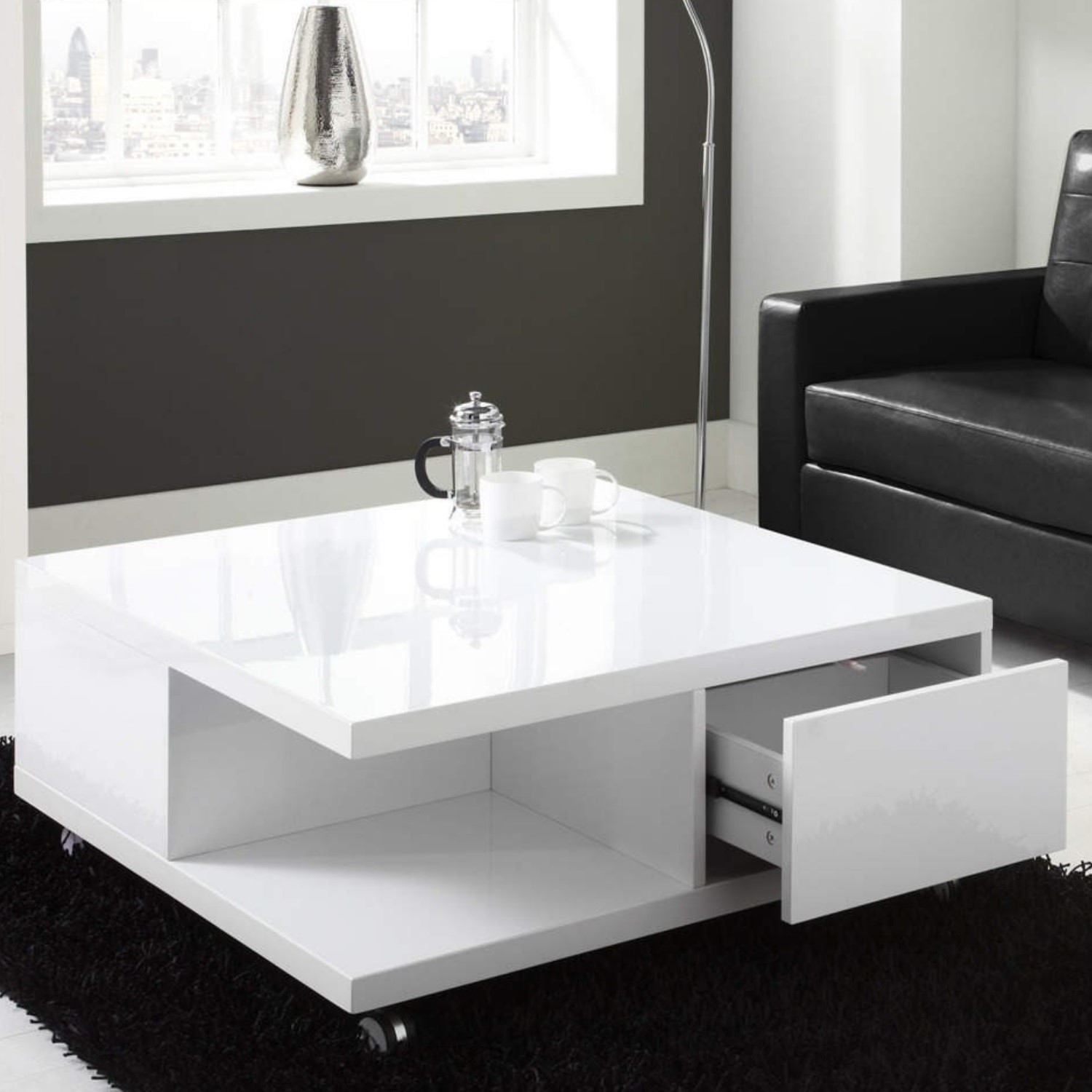 White High Gloss Coffee Table With Storage Drawers Tiffany Range