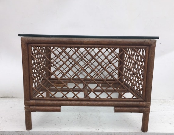 Mid Century Vintage Retro 60s 70s Square Rattan And Glass Top Etsy