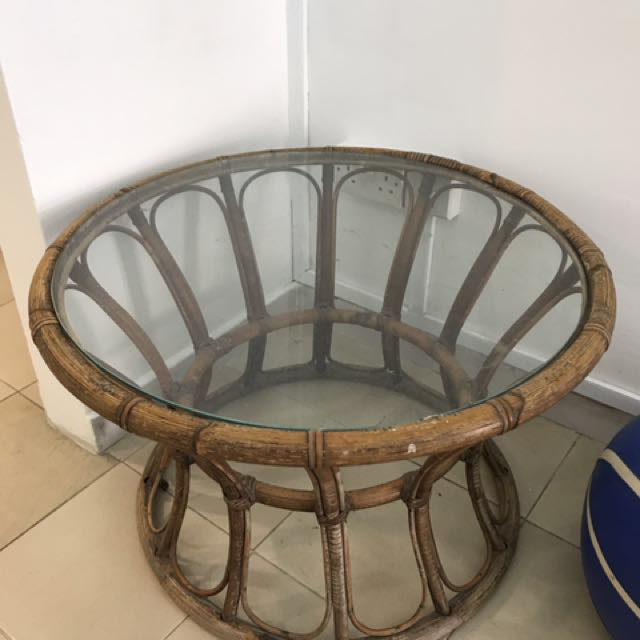 Round Glass Top Coffee Table With Rattan Stand Of Size 69cm