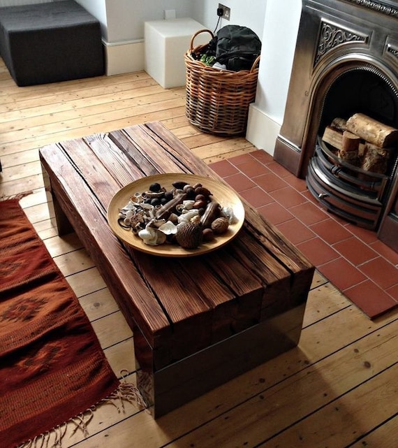 Handmade Reclaimed Wood Steel Coffee Table Vintage Rustic Etsy