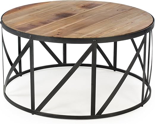 Reclaimed Wood Iron Round Coffee Table Furniture Metal Vseprodom