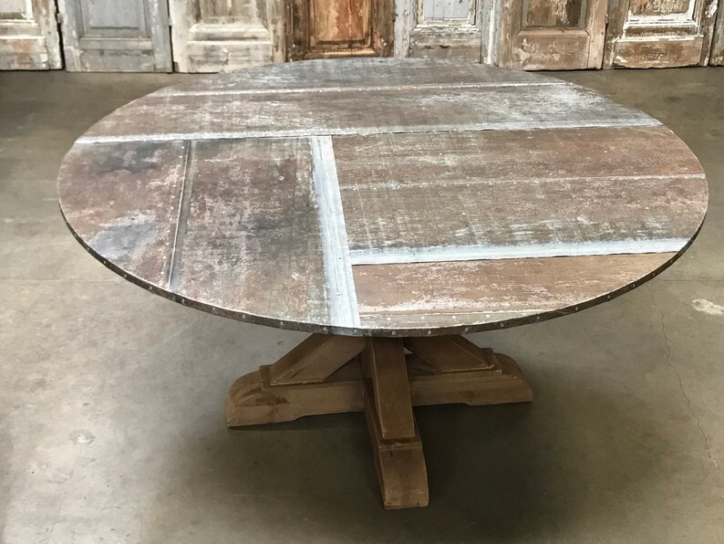 5ft Round Zinc Table With Restoration Hardware Trestle Wood Etsy