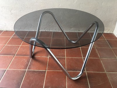Vintage Retro 70s Coffee Table In Smoked Glass Chrome Mid