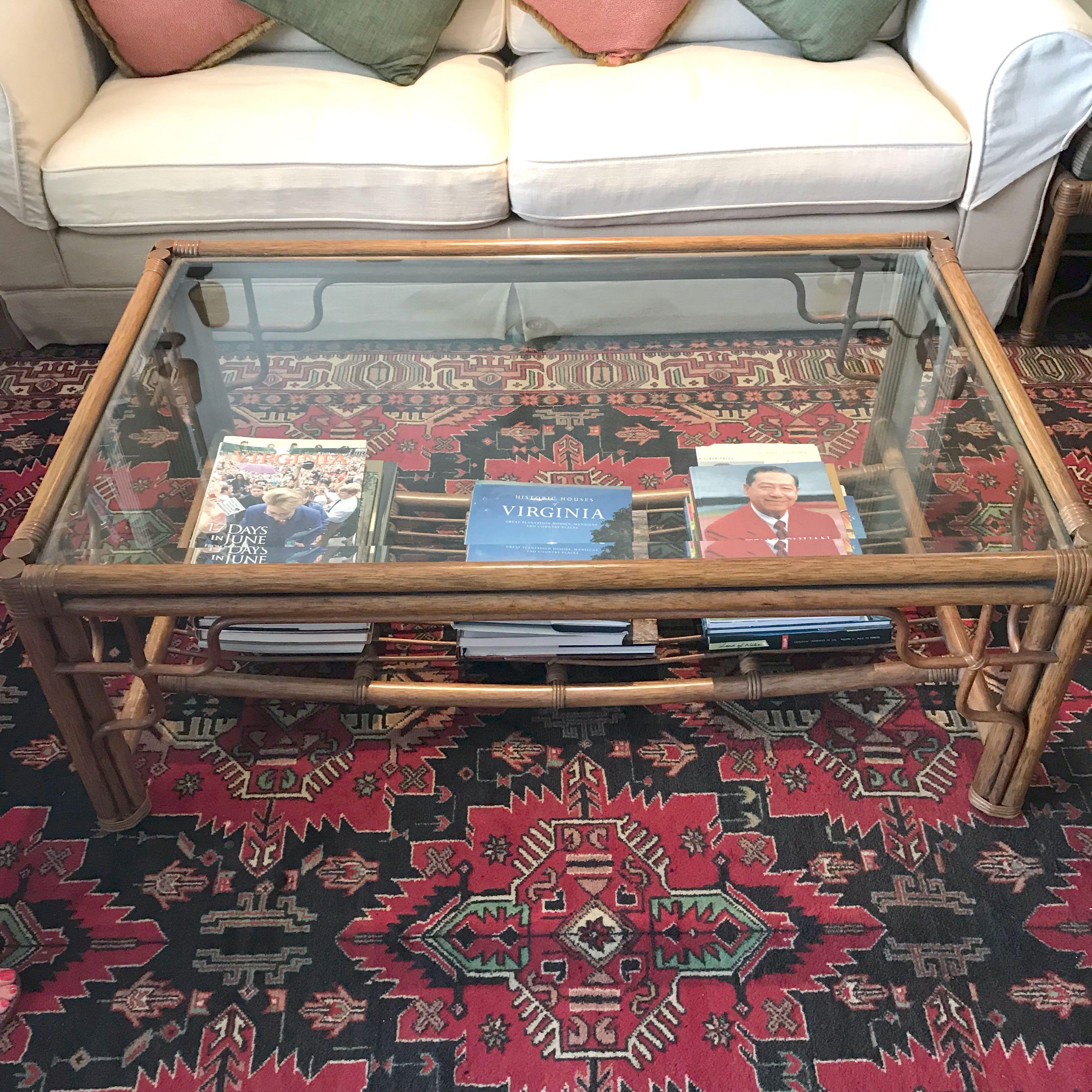 Unique Retro Vintage Rattan Coffee Table With Glass Top Furniture