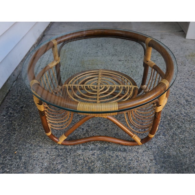Round Bamboo And Glass Table Boho Coffee Table Retro Etch