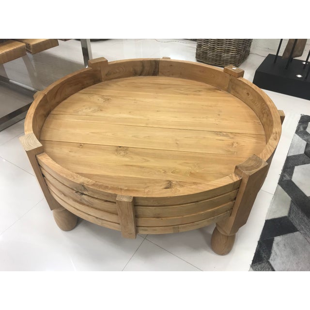 Manilal Carved Solid Mango Wood Round Coffee Table H35 X W90 X