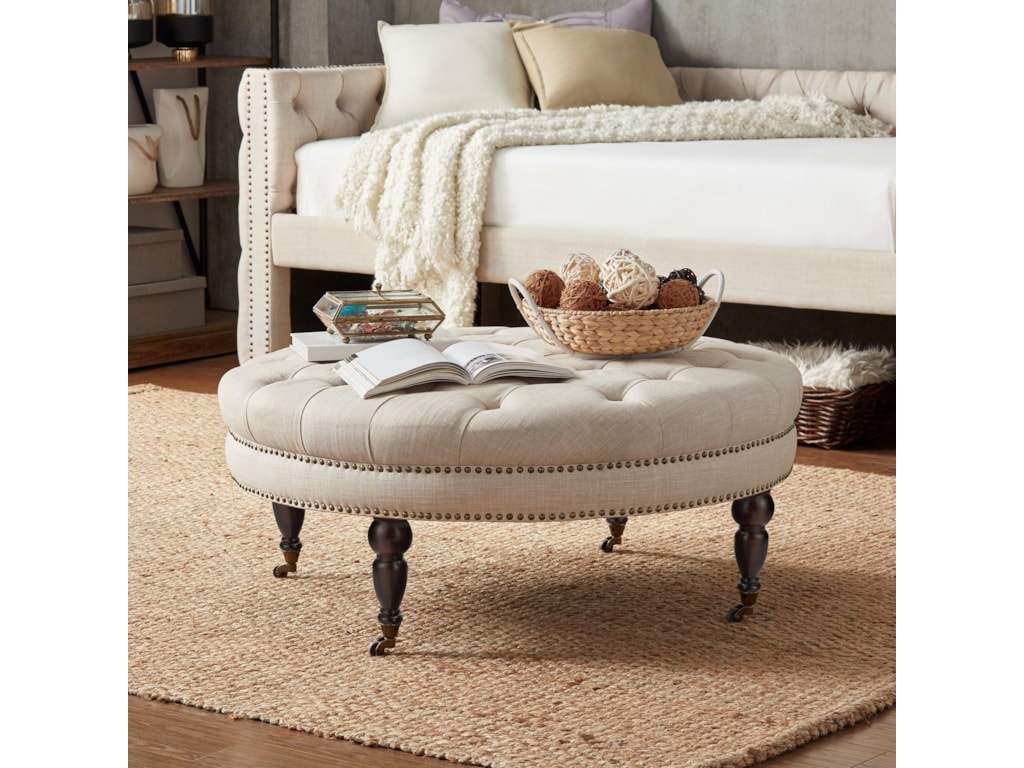 Weston Home Bowman Livingroom Round Button Tufted Cocktail Ottoman