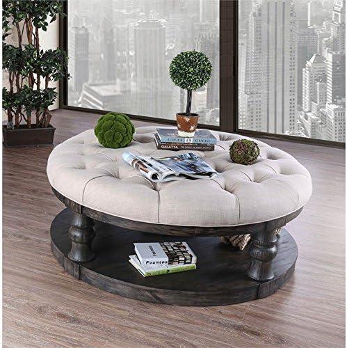 Amazon Com Furniture Of America Joss Round Tufted Coffee Table In