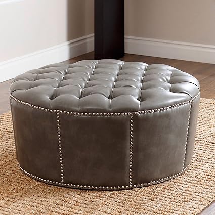 Amazon Com Abbyson Living Leather Ottoman Nailhead Trim Round