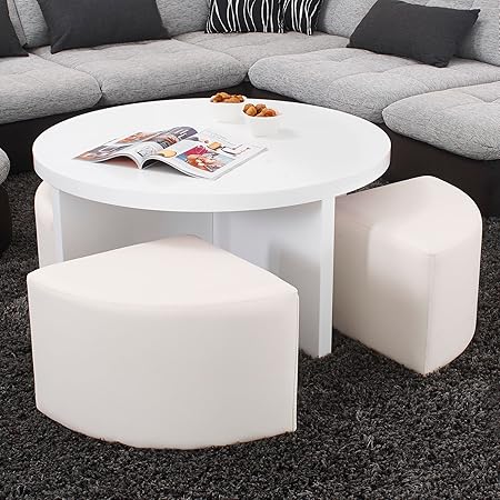 Ruhla Coffee Table With 4 Stools Table Mdf White High Gloss Patent
