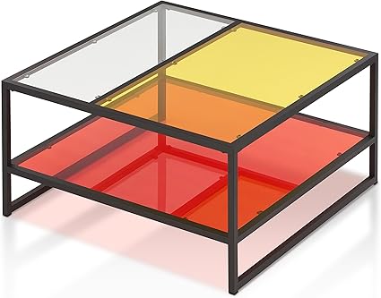 Iohomes Haylena Contemporary Multi Tone Glass Top Square Coffee