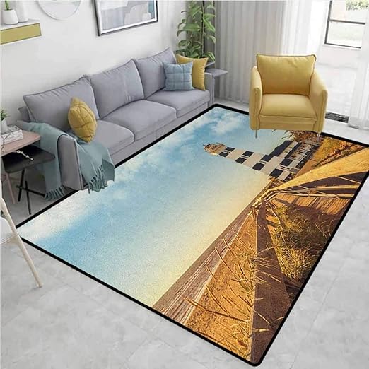 Amazon Com Yucouhome Lighthouse Striped Area Rug Under Table