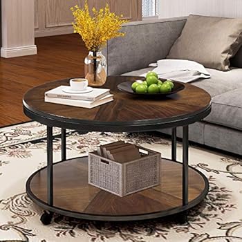 Amazon Com 36 Wood Round Coffee Table Industrial Wood Top
