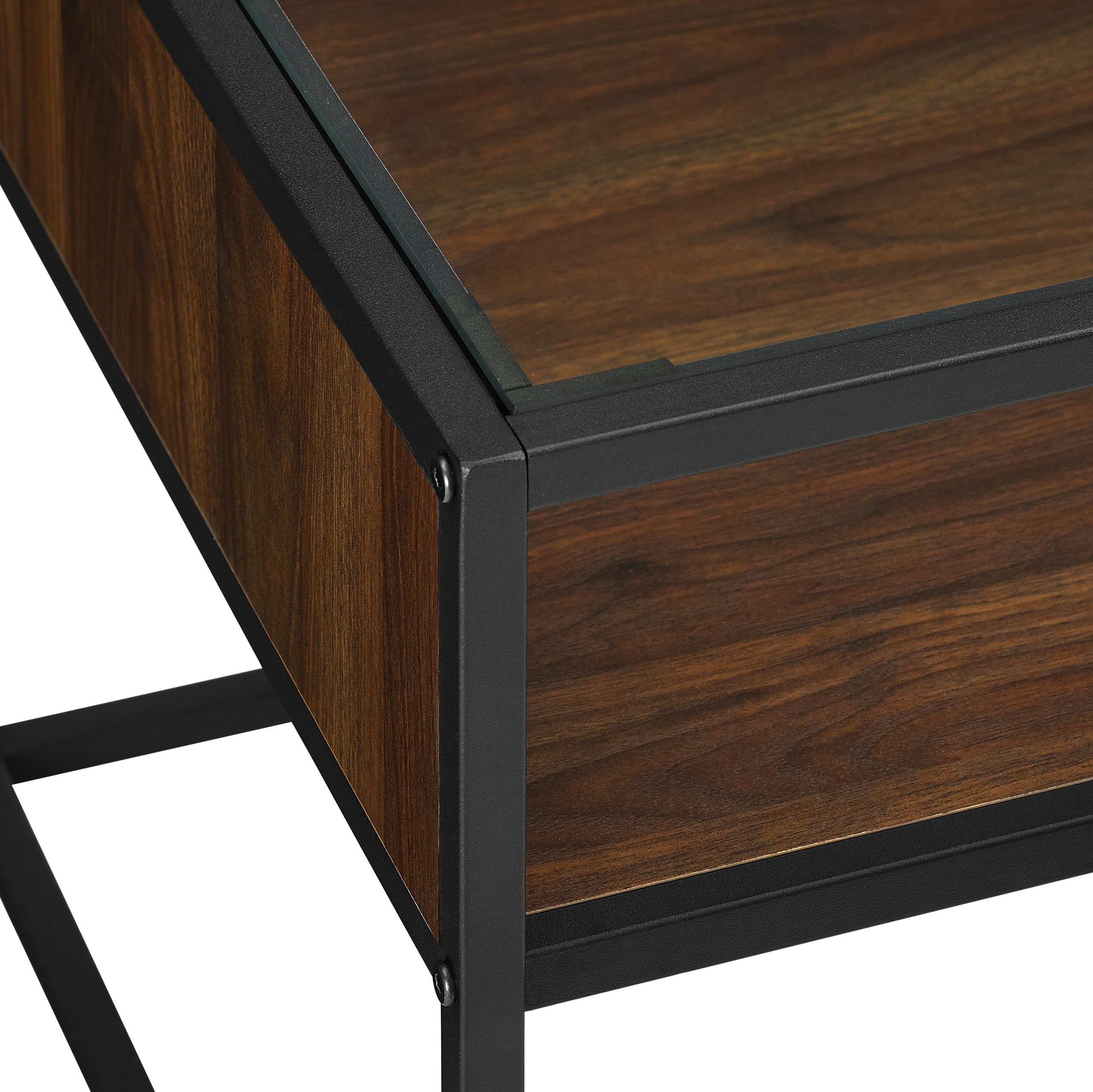 Walker Edison C40jerctdw Rustic Glass Coffee Table In Dark Walnut