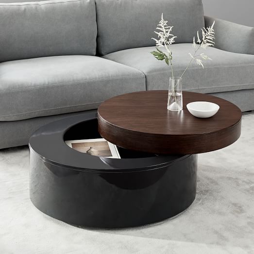 Mid Century Pop Up Storage Coffee Table Dark Mineral West Elm