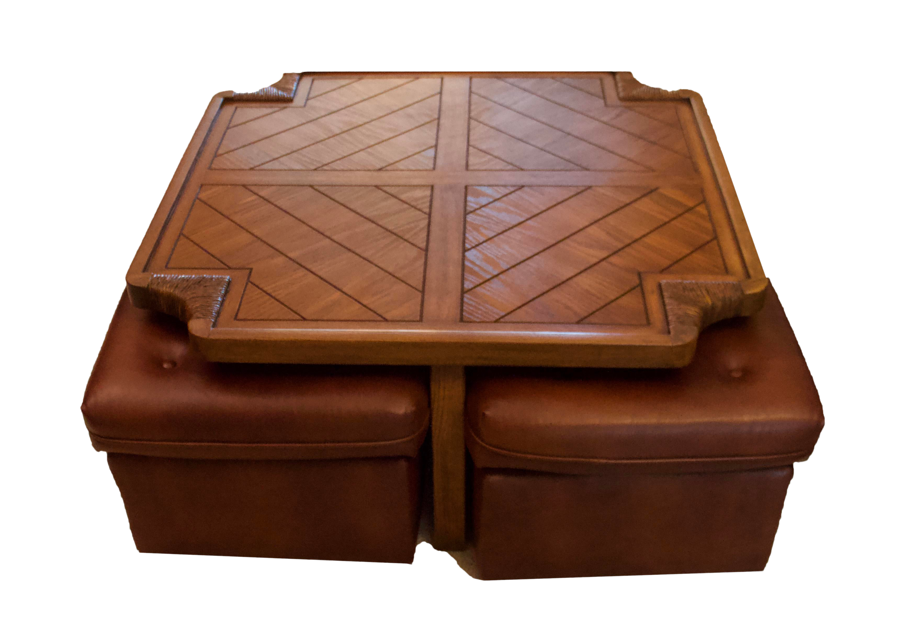 Mcm Kroehler Game Coffee Table Stowed 4 Wheeled Seats 5 Pieces