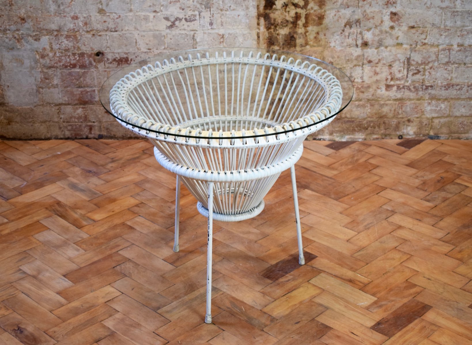 Vintage Retro Mid Century Franco Albini White Painted Cane Wicker