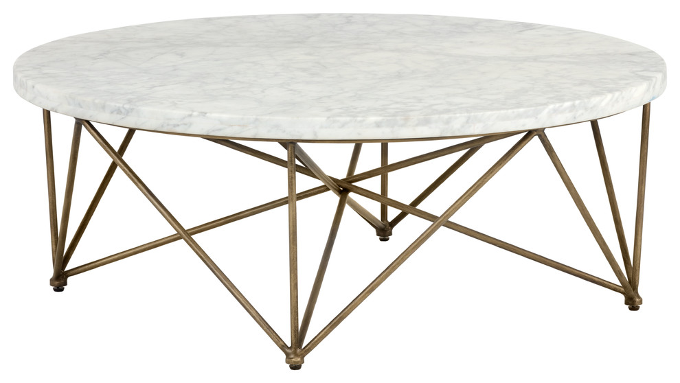 Sunpan 103515 Skyy Coffee Table Round Antique Brass White