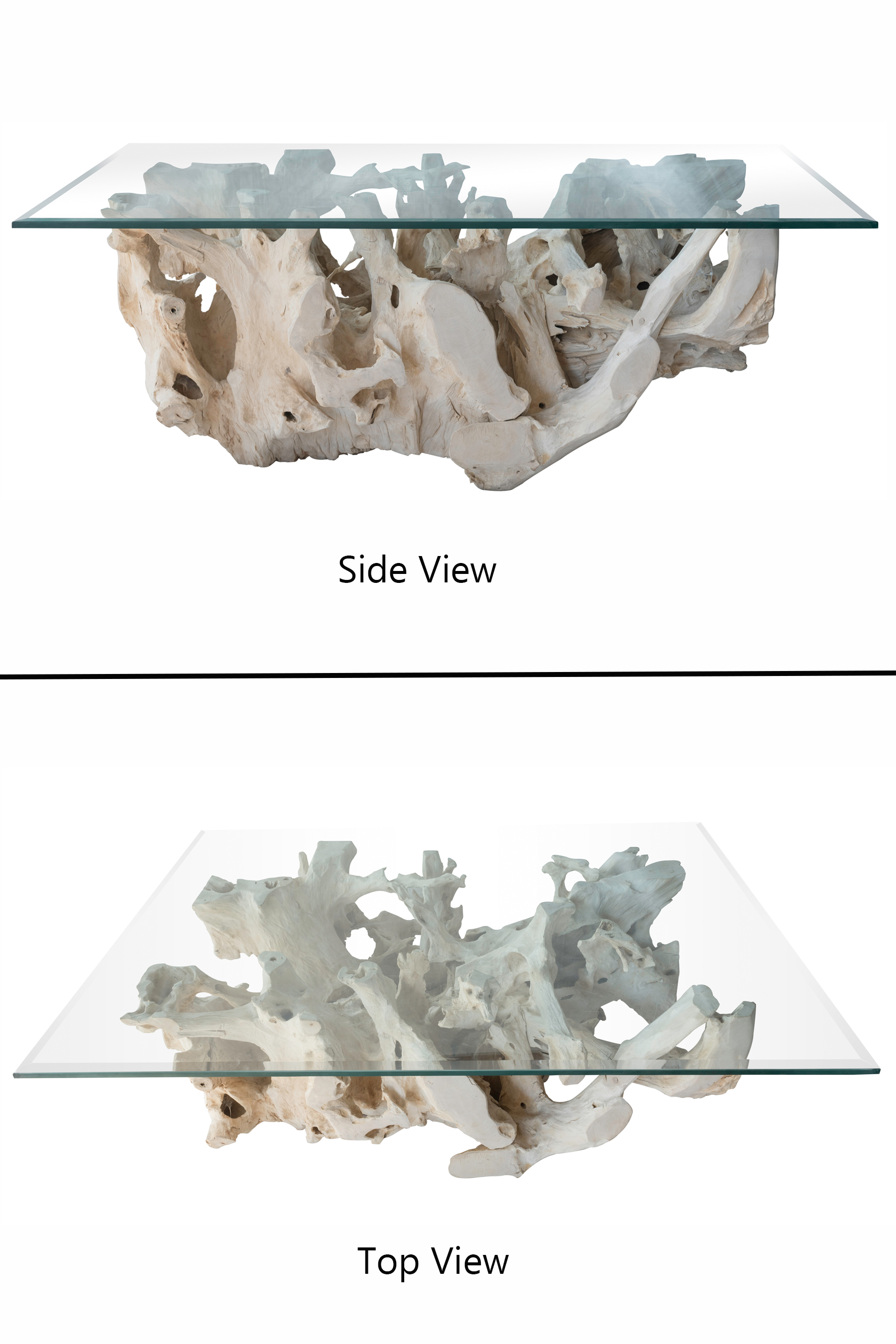 Authentic Teak Root Coffee Table 48 Glass Top Cocktail Table