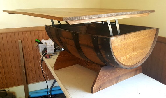 Reclaimed Wine Barrel Coffee Table With Unique Lift Top