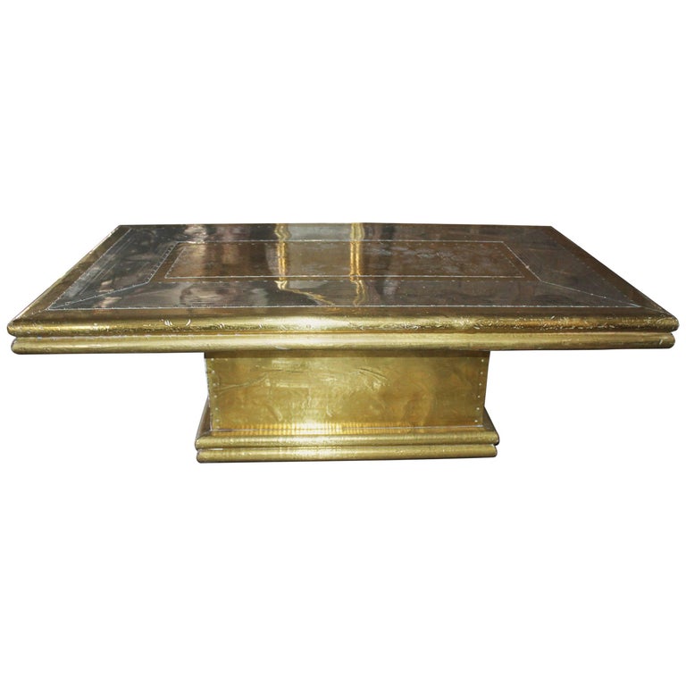 1970s Two Tone Gilded Brass On Wood Designer Coffee Table For Sale