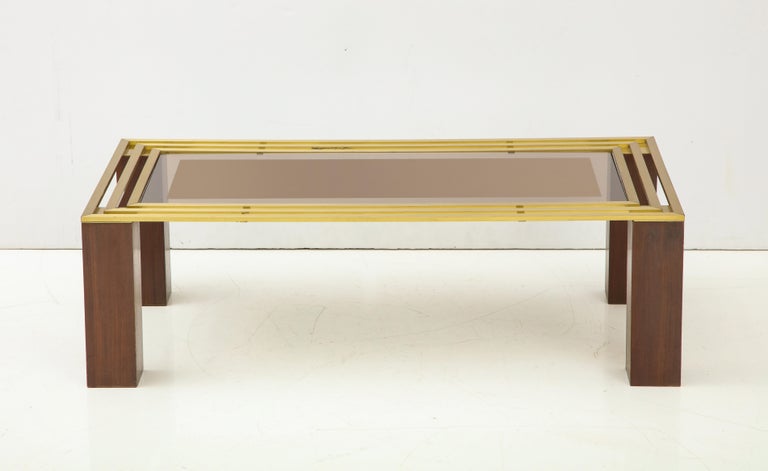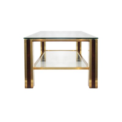 Italian 1970s Walnut Brass And Glass Coffee Table For Sale At 1stdibs