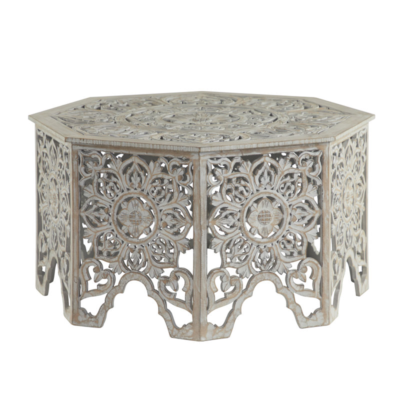 Bungalow Rose Gray Washed Decorative Carved Wood Coffee Table 33