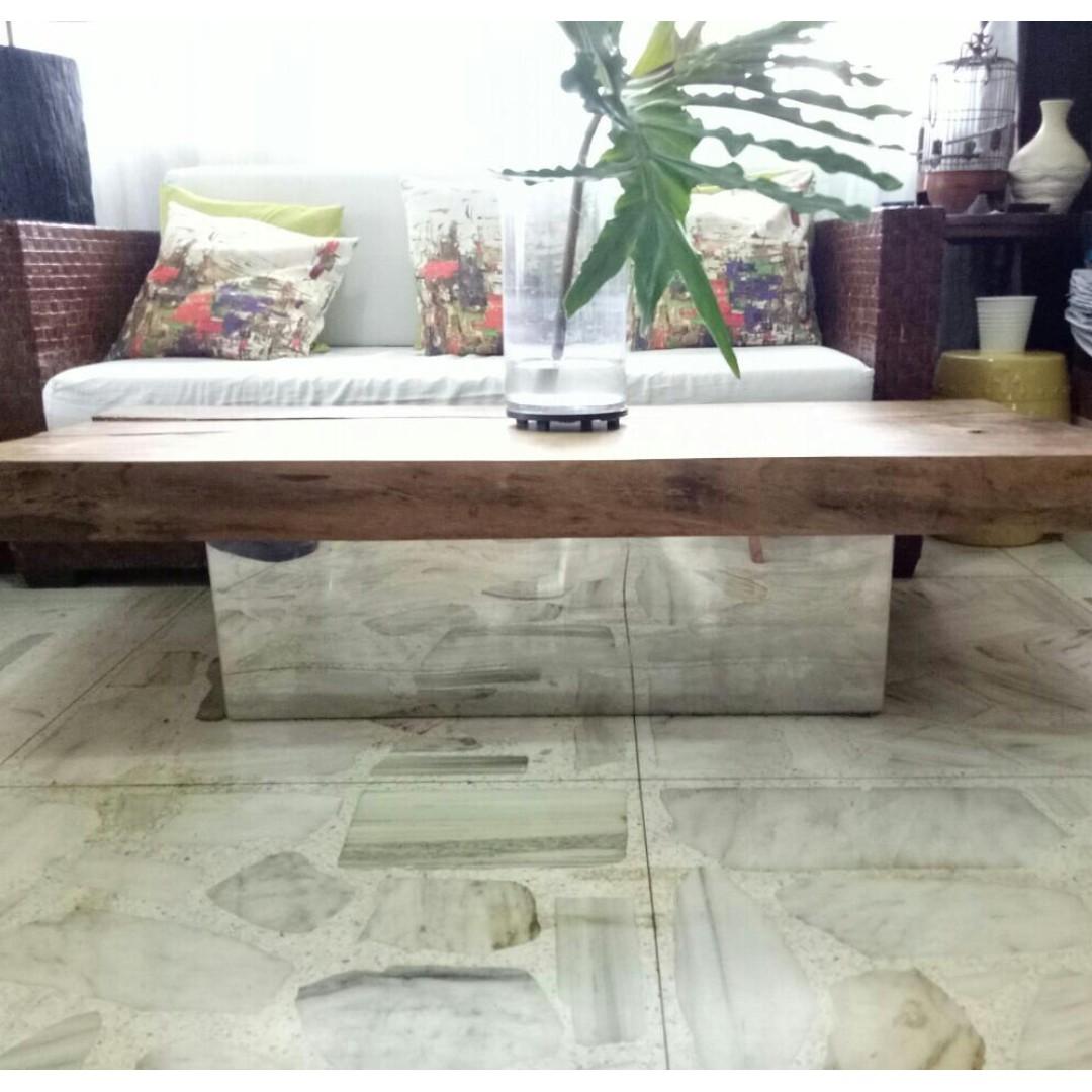 Solid Wood Coffee Table With Stainless Steel Base For Sale On