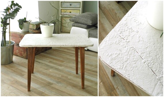 Wooden Folding Coffee Table White Lace Top End Side Bedside Etsy