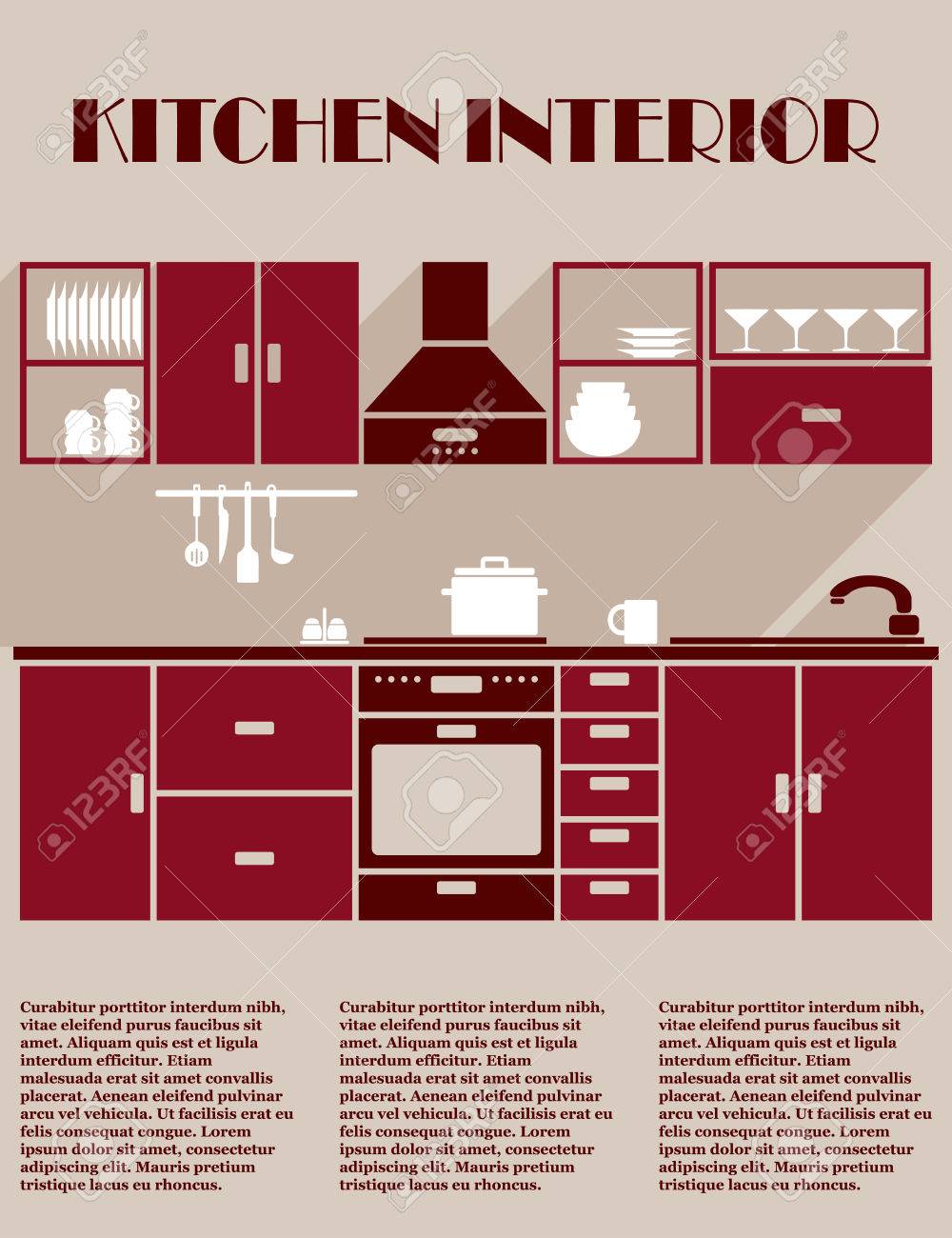 Kitchen Interior Infographic Template In Shades Of Maroon With