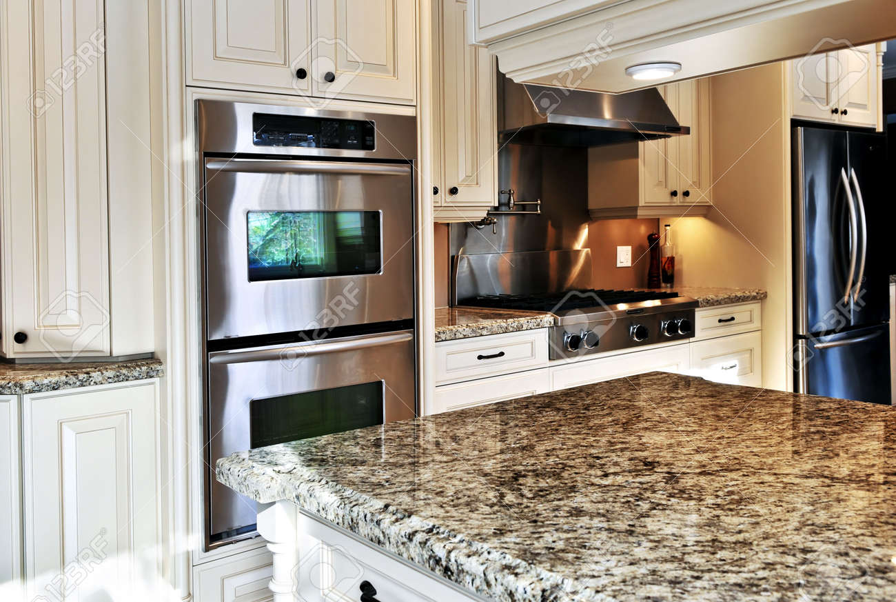 Interior Of Modern Luxury Kitchen With Stainless Steel Appliances