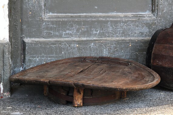 Antique Primitive Table Low Ottoman Table Wood Round Etsy
