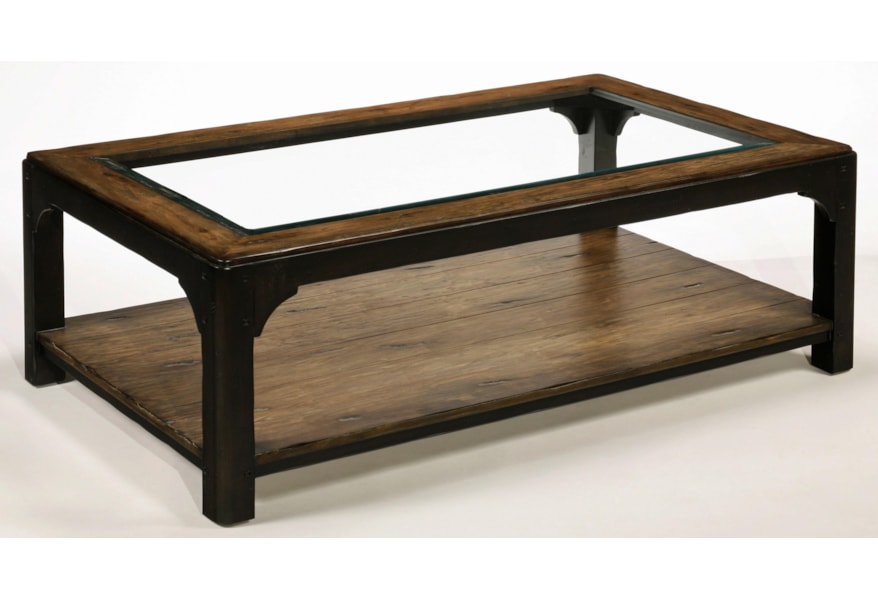 Carson Rectangular Glass Top Cocktail Table With Two Toned Finish