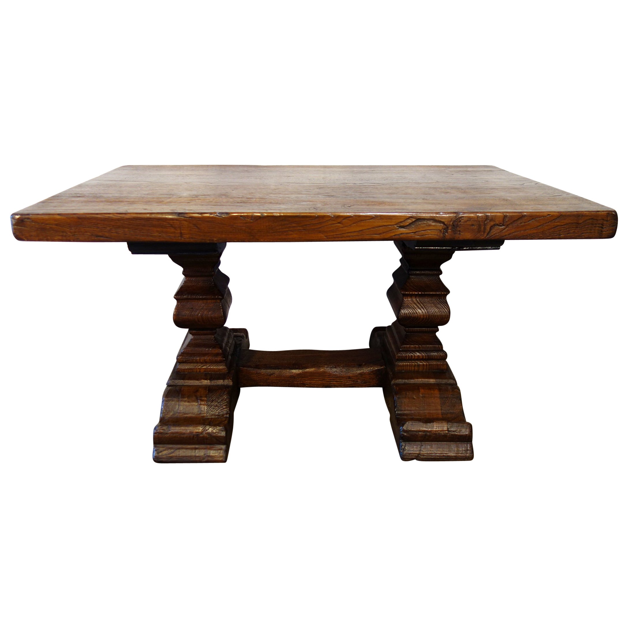 Italian Custom Antique Reproduction 2 Pedestal Coffee Table In Old