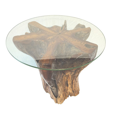 Buy Root Trunk Round Side Table With 60cm Round Glass From Makasi