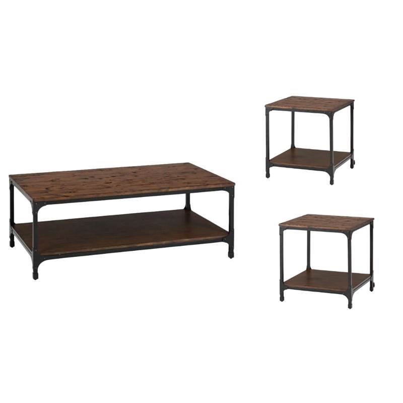 3 Piece Rustic Industrial Coffee Table Set With Coffee Table And