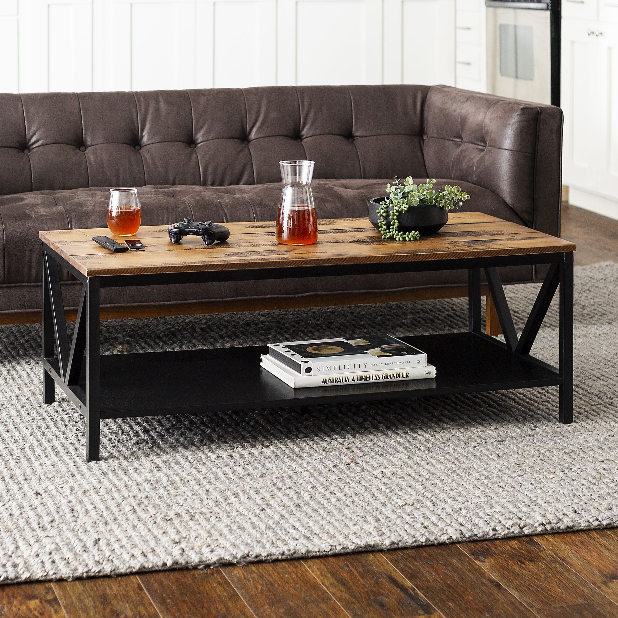 Walker Edison Af40mxctro Rustic Wood Coffee Table In Rustic Oak Black